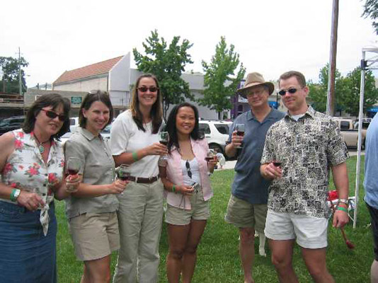 Duane, Nicole, Jill, Marge, Terry, & Mike sampling wine at the Grey Wolf booth.